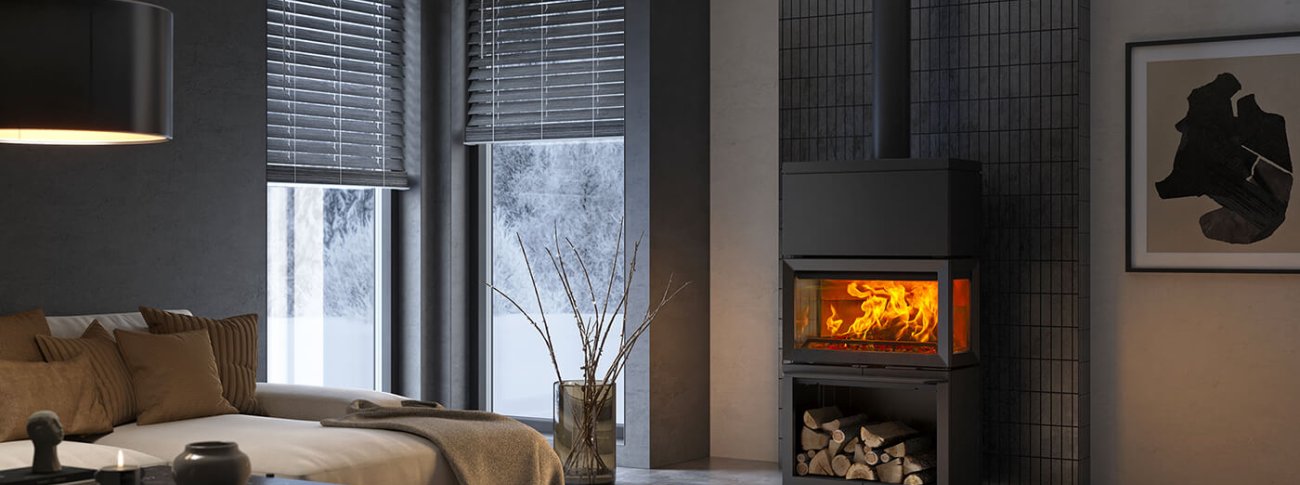 Un’alta stufa a legna con eccellenti proprietà di conservazione del calore. Le pietre ad accumulo termico nella parte superiore della stufa a legna possono fornire fino a 12 ore in più di calore dopo lo spegnimento dell’ultimo ceppo. Inoltre, nella base è presente un pratico spazio per lo stoccaggio dei ceppi. Il sistema di lavaggio ad aria e il rivestimento sui tre grandi pannelli di vetro aiutano a mantenerlo pulito per una migliore visuale delle fiamme. Insieme alle solide piastre interne in ghisa di colore chiaro, questo fornisce una vista luminosa e chiara del fuoco che arde. Le prese d’aria intuitive facilitano l’accensione della stufa e il controllo della fiamma e del fuoco e la presenza di un blocco dei ceppi nella camera di combustione e uno sportello con chiusura a scatto aumentano la sicurezza.